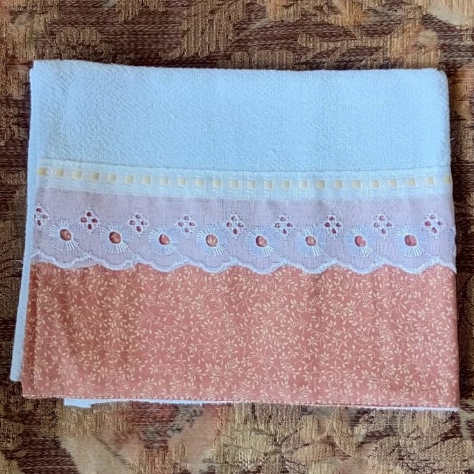 Pano de prato com passa fita e estampa decorada com barrado digital