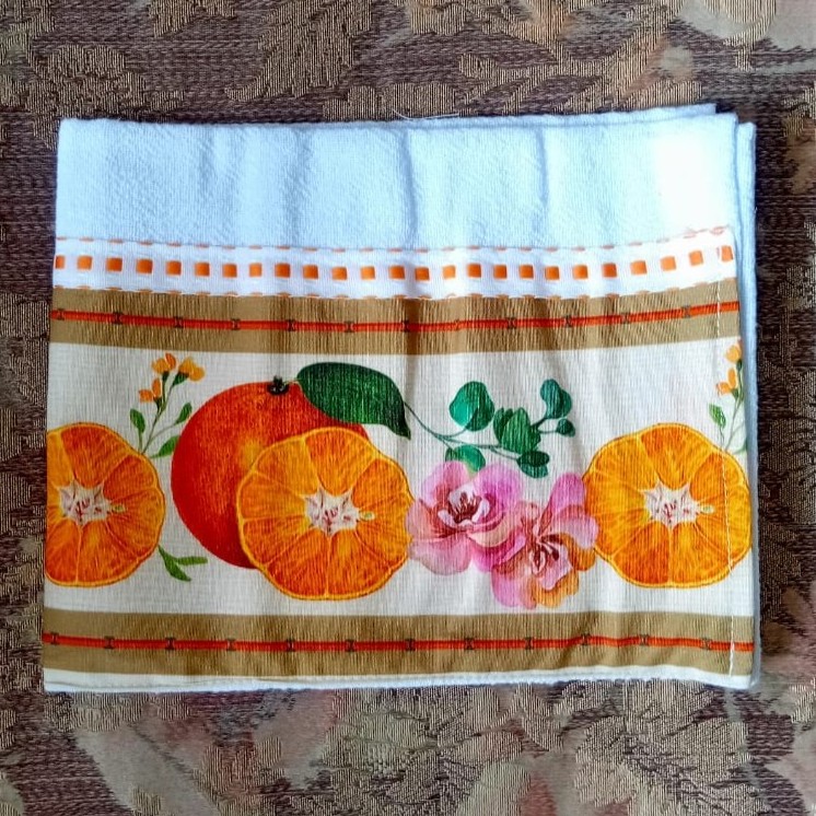 Pano de prato com passa fita e estampa decorada com barrado digital