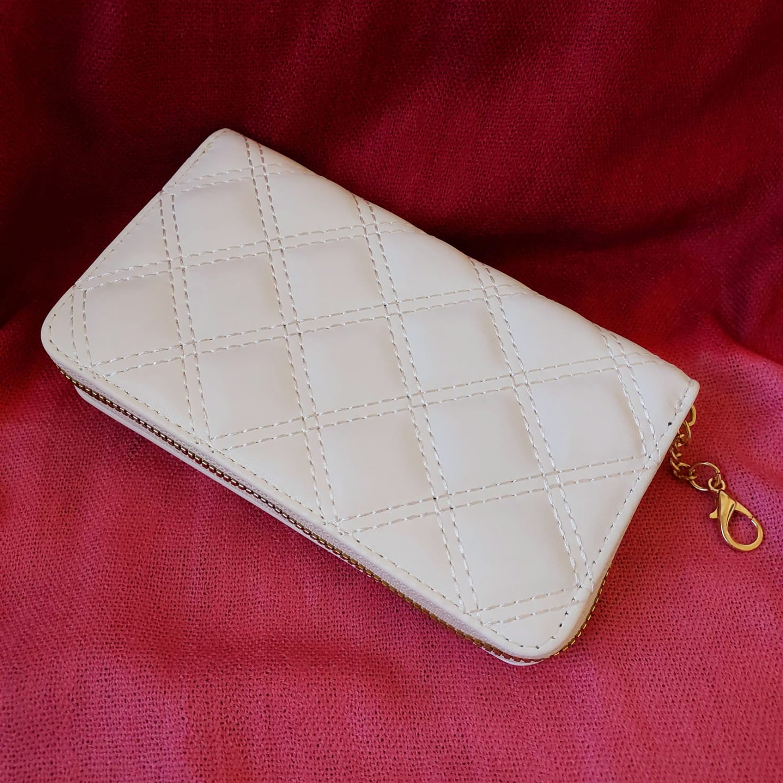 Visual compacto, sofisticado, carteira com várias divisórias. Boa opção para quem quer algo leve e elegante para carregar na bolsa.