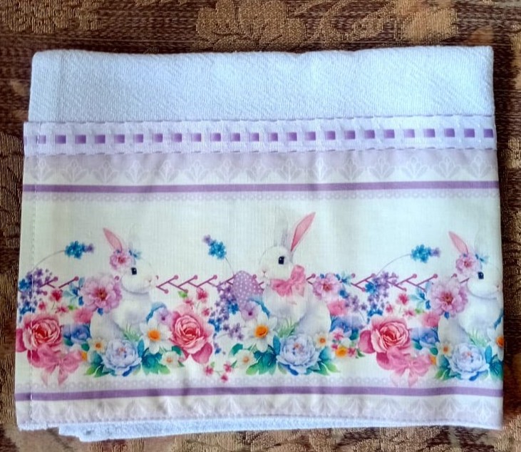 Pano de prato com passa fita e estampa decorada com barrado digital