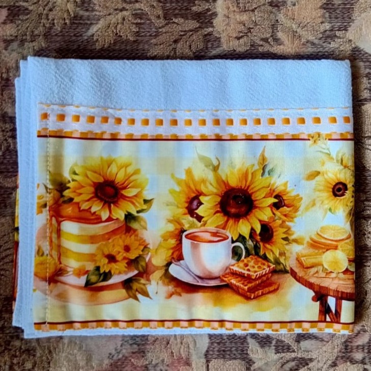 Pano de prato com passa fita e estampa decorada com barrado digital