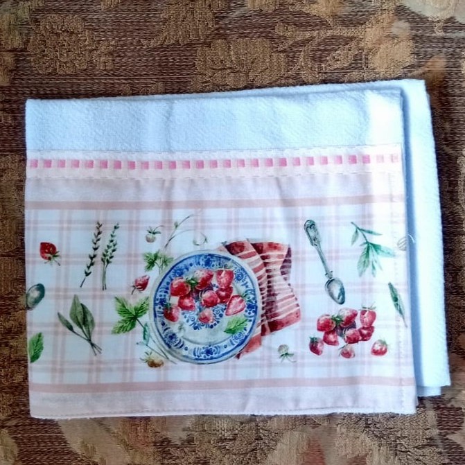 Pano de prato com passa fita e estampa decorada com barrado digital
