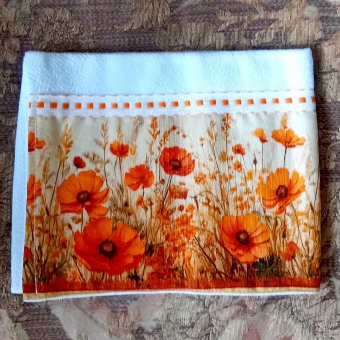 Pano de prato com passa fita e estampa decorada com barrado digital