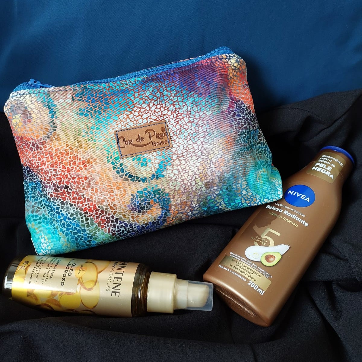 Nécessaire feito com materiais de primeira qualidade, variando entre tapeçaria, acquablock ou sintético, com estampas femininas ou unissex.